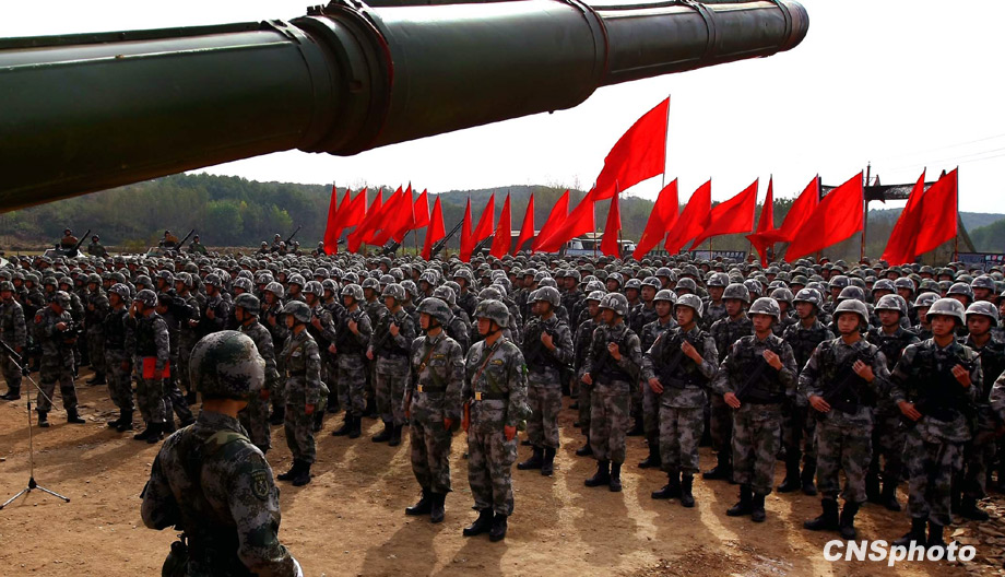 解放軍濟(jì)南軍區(qū)“前鋒-2009A”軍事演習(xí),將于10月21日在某合同戰(zhàn)術(shù)訓(xùn)練基地舉行,參加演習(xí)部隊10月20日組織戰(zhàn)前動員。這次演習(xí)主要是由兵力兵器數(shù)量規(guī)模向信息火力效能聚優(yōu)轉(zhuǎn)變、指揮的重心由主攻方向上的重點突破向作戰(zhàn)關(guān)節(jié)要害的體系毀癱轉(zhuǎn)變、火力的運(yùn)用由概略粗放決策向科學(xué)精細(xì)籌劃轉(zhuǎn)變、協(xié)同的重點由地面步坦行動向陸空火力協(xié)調(diào)轉(zhuǎn)變、行動的控制由時間位置推進(jìn)量向效果態(tài)勢達(dá)成度轉(zhuǎn)變、作戰(zhàn)的目的由殲敵奪地向控要制權(quán)轉(zhuǎn)變。 中新社發(fā) 宋吉河 攝