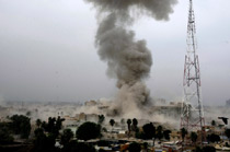 巴格達市中心25日發生兩起汽車炸彈爆炸事件,爆炸發生在早晨上班高峰時間,死亡人數不斷攀升,已超過百人。來源:中國新聞網
