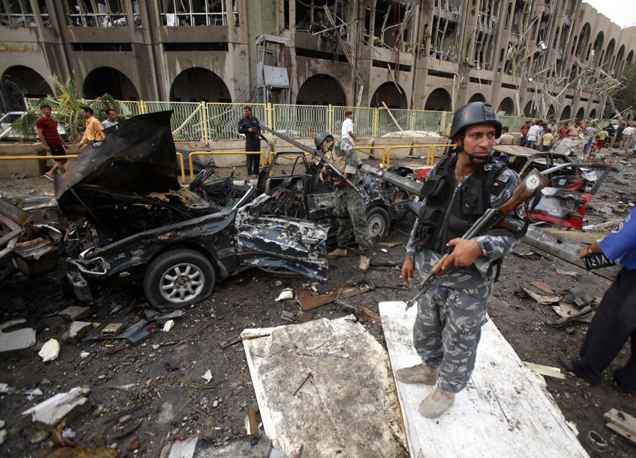 巴格達市中心25日發(fā)生兩起汽車炸彈爆炸事件,爆炸發(fā)生在早晨上班高峰時間,造成嚴(yán)重傷亡,死亡人數(shù)不斷攀升,已超過百人。來源:中國新聞網(wǎng)