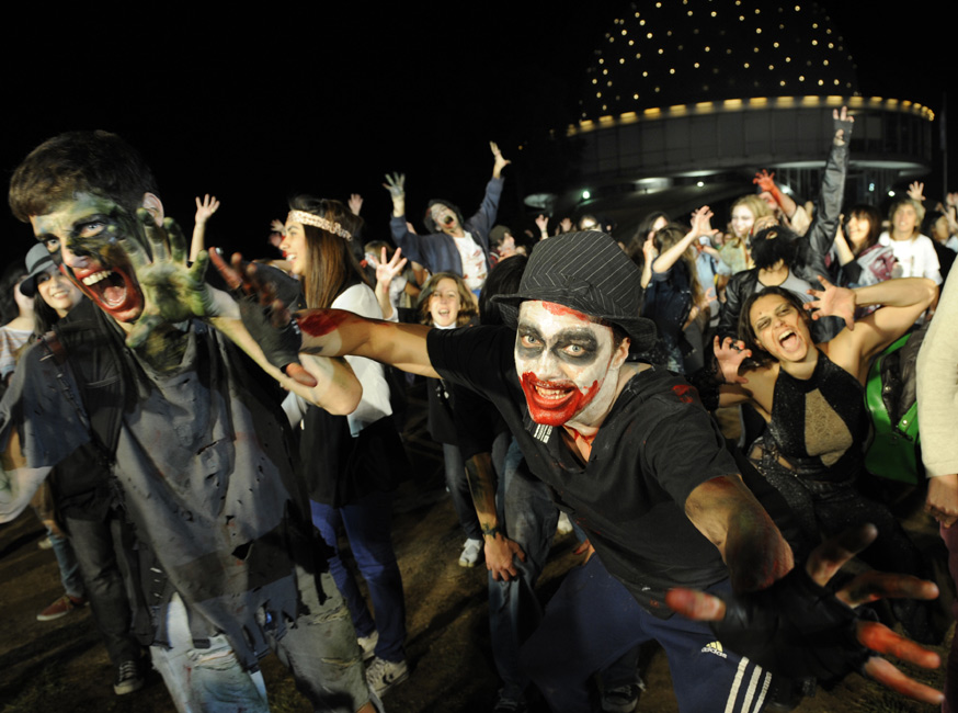 25日,“戰栗全世界”活動在全球300多座城市同期舉行,全球一共有大約20000人同時跳起了邁克·杰克遜著名的戰栗舞。圖片來源:中國新聞網