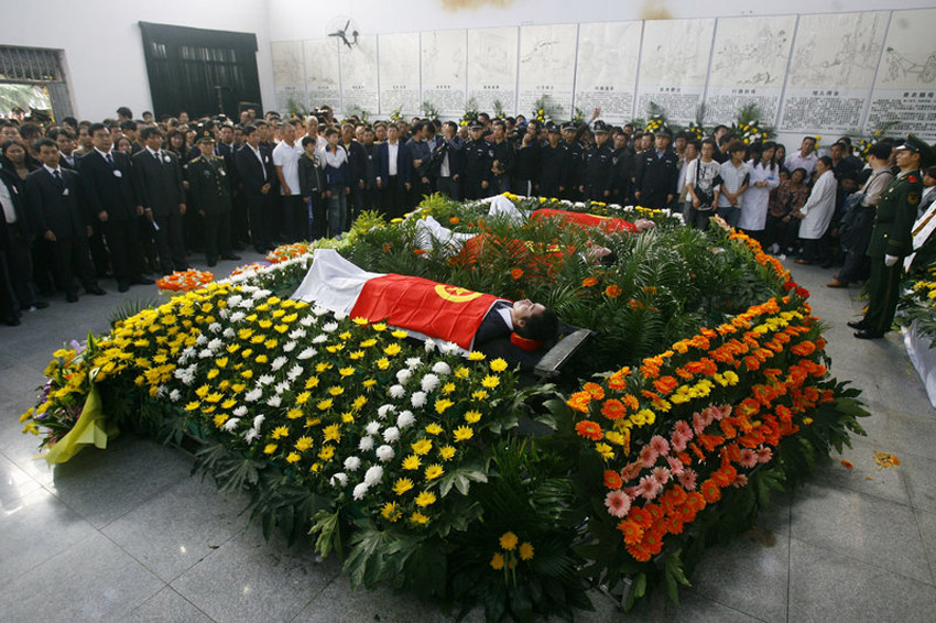 10月28日上午,湖北荊州市在市殯儀館舉行隆重追悼大會,悼念陳及時、何東旭、方招三位舍己救人大學(xué)生。數(shù)萬群眾趕到追悼會現(xiàn)場,手捧菊花為英雄道別。