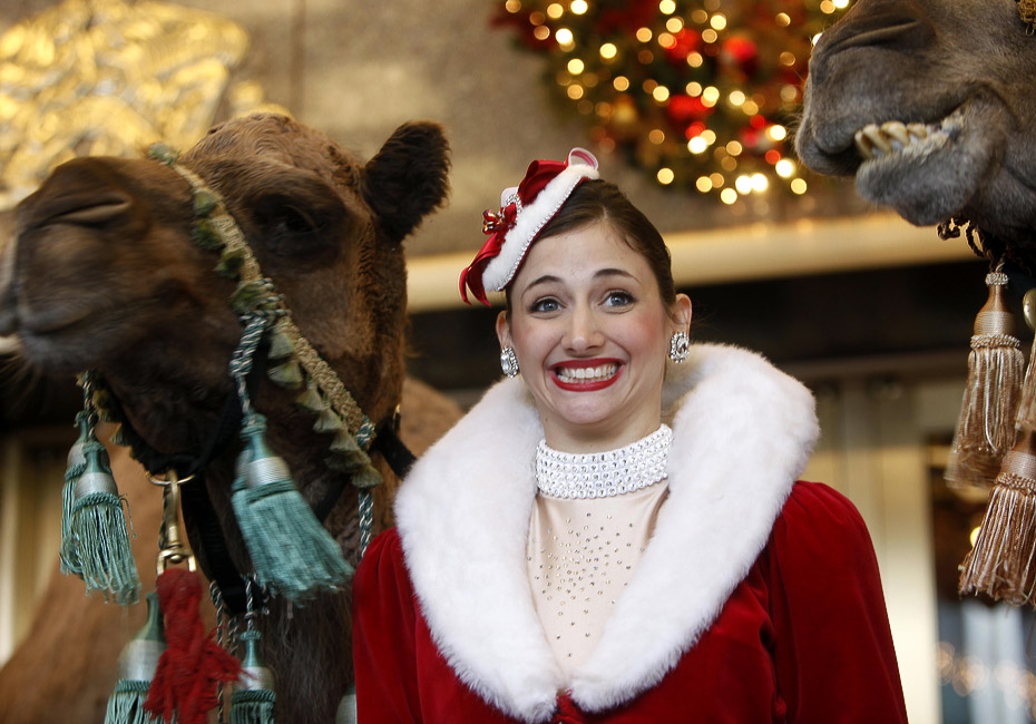 10月29日,火箭女郎舞蹈團的姑娘們在美國紐約廣播城音樂廳與眾多動物明星合影,準(zhǔn)備在圣誕秀上亮相。圖片來源:中國新聞網(wǎng)