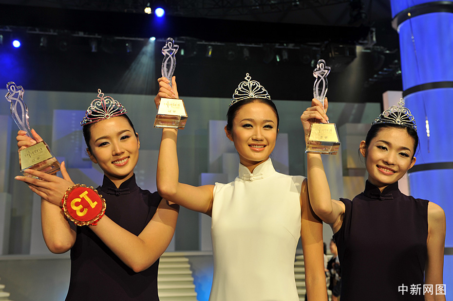 10月31日晚,“2009中華小姐環球大賽”總決賽在上海國際體操中心隆重上演,最終來自北京的田桐、上海的朱盈菲和陜西的李若凝分別摘得本屆大賽的冠亞季軍。中新網記者 金碩 攝