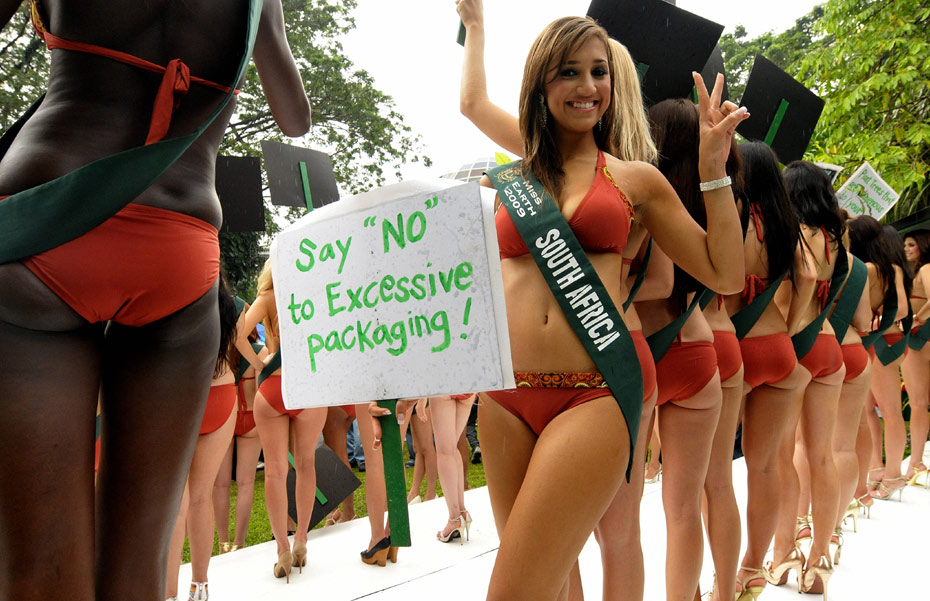 2009世界綠色環保大使小姐決賽在菲律賓進行,來自世界各地的90名佳麗參與角逐。世界綠色環保大使(地球小姐)評選,是全世界唯一以“綠色環保”為主題注冊的國際頂級權威大賽,由菲律賓總統阿羅約創始。圖片來源:中國新聞網