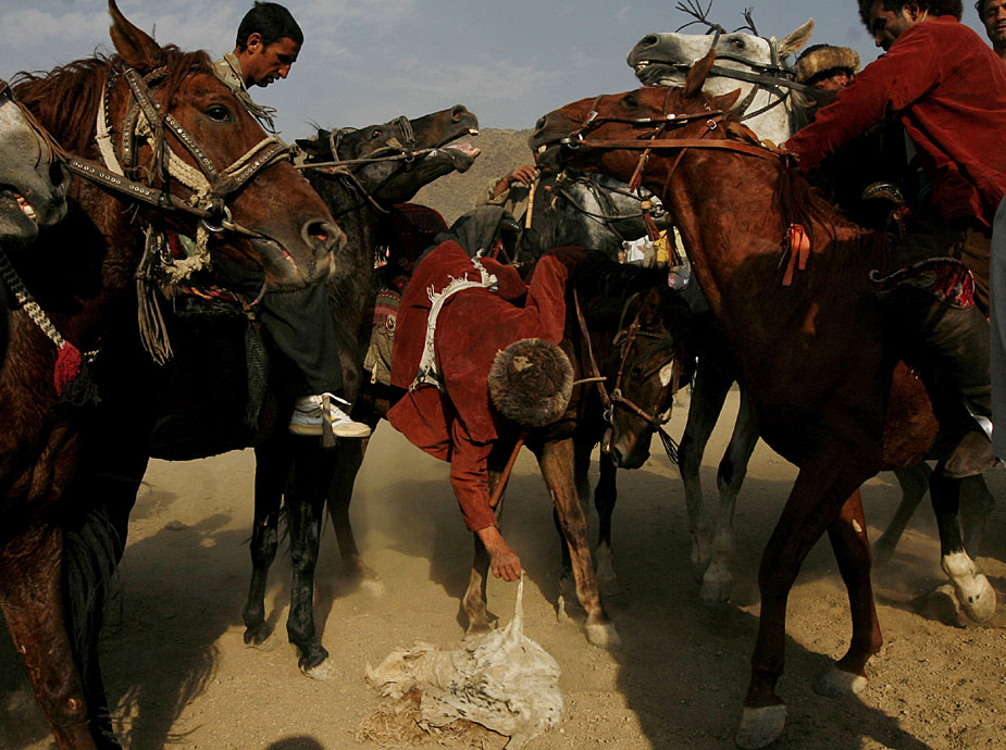 11月6日,阿富汗首都喀布爾舉行傳統的“馬背叼羊”比賽。圖片來源:中國新聞網