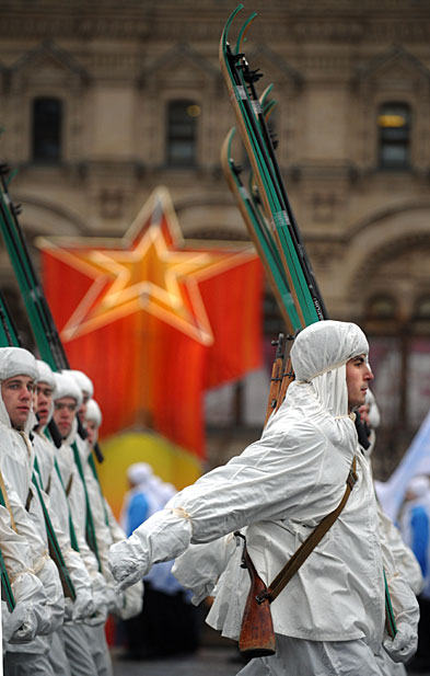 11月7日,俄羅斯士兵身穿二戰(zhàn)時期的軍服在莫斯科紅場舉行閱兵閱兵式紀念1941年紅場閱兵。圖片來源:中國新聞網
