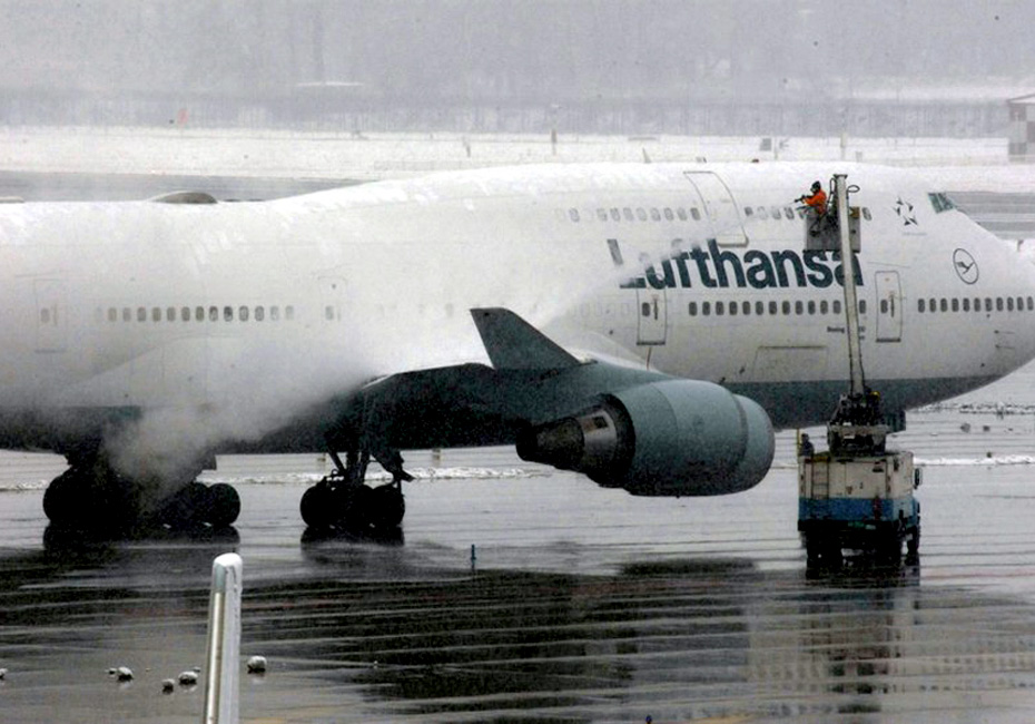 11月12日,由于雪天霧大機(jī)場好多航班延誤或取消,機(jī)場工作人員了為了保證游客出行的順暢,一大早就為停在停機(jī)坪待飛的飛機(jī)作融雪處理。