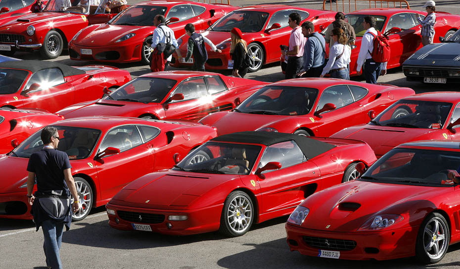 11月15日,法拉利老爺車挑戰賽在西班牙瓦倫西亞賽道舉辦,眾多老款法拉利賽車在賽場爭相亮相。圖片來源:中國新聞網