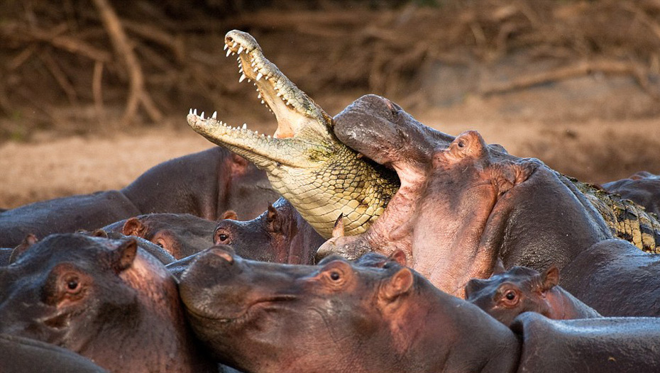 蠢鱷魚混入河馬群 引眾怒被活活咬死