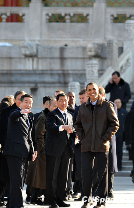11月17日,正在中國進行國事訪問的美國總統奧巴馬一行參觀北京故宮。圖片來源:中國新聞網