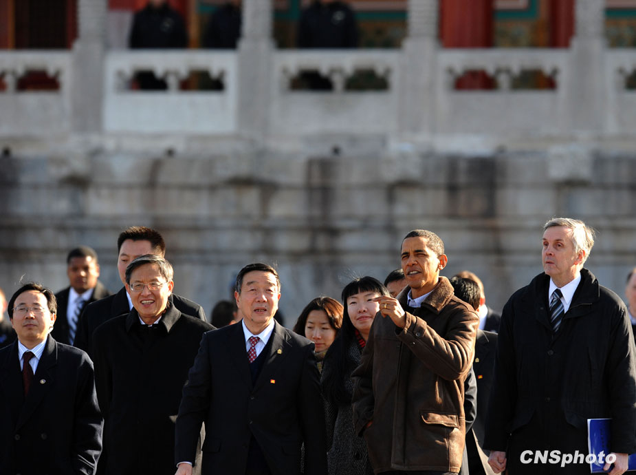 11月17日,正在中國進(jìn)行國事訪問的美國總統(tǒng)奧巴馬一行參觀北京故宮。中新社發(fā) 廖攀 攝