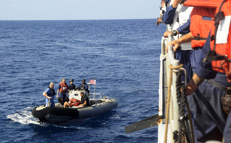 11月17日,亞丁灣,3名漁民抱著木板在海面上漂流3天后獲救。據悉,他們遭遇了十幾名名疑似海盜的劫持,海盜們讓其選擇或跳海逃生或被殺死。圖片來源:中國新聞網