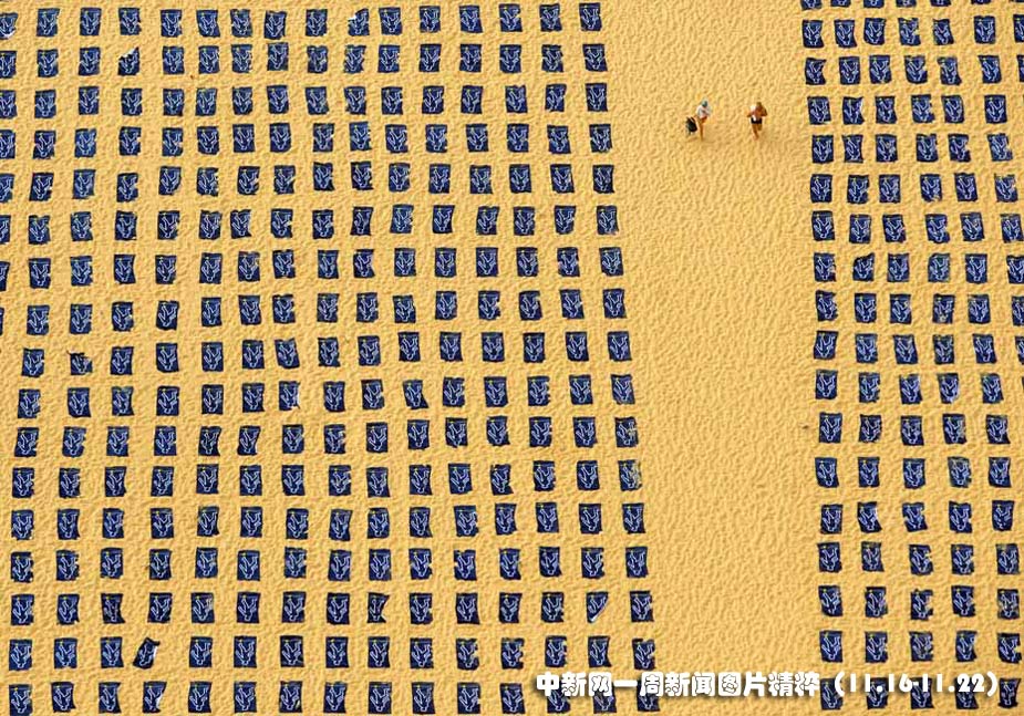 11月15日,悉尼癌癥理事會在邦迪海灘放置1700條浴巾“曬”日光浴,場面異常壯觀。希望通過此次活動提高人們對曬日光浴可能導致皮膚癌的認識。圖片來源:中國新聞網(wǎng)