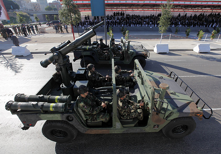 11月22日,黎巴嫩軍隊在貝魯特市中心舉行閱兵式,慶祝黎巴嫩獨立66周年。圖片來源:中國新聞網