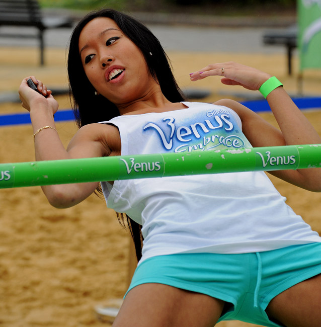 11月24日,在澳大利亞悉尼舉行了一場“低桿平衡”大賽,超過150名美女參加了這一賽事。圖片來源:中國新聞網