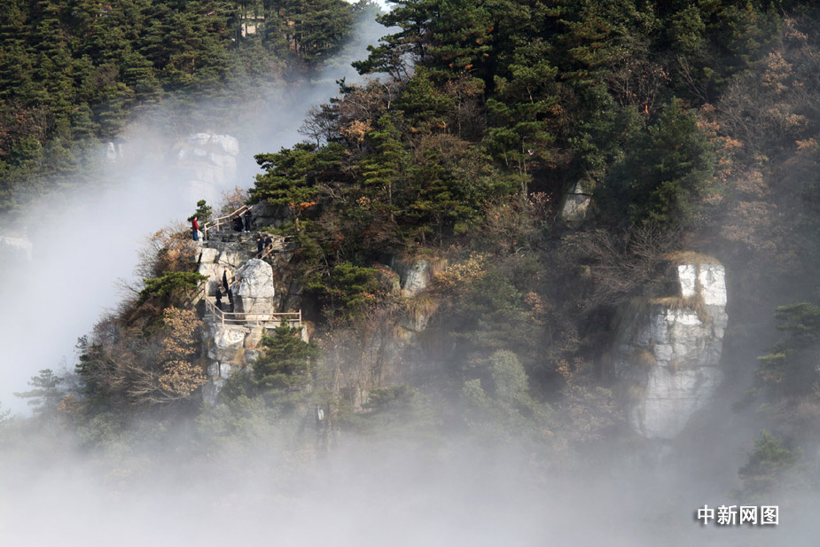 11月29日,受北方弱冷空氣影響,廬山出現平流云、佛光奇觀,佛光持續了近二個多小時。當日,整個廬山被濃濃的云霧所籠罩,若隱若現,宛如仙境。(胡國林 陳飛)