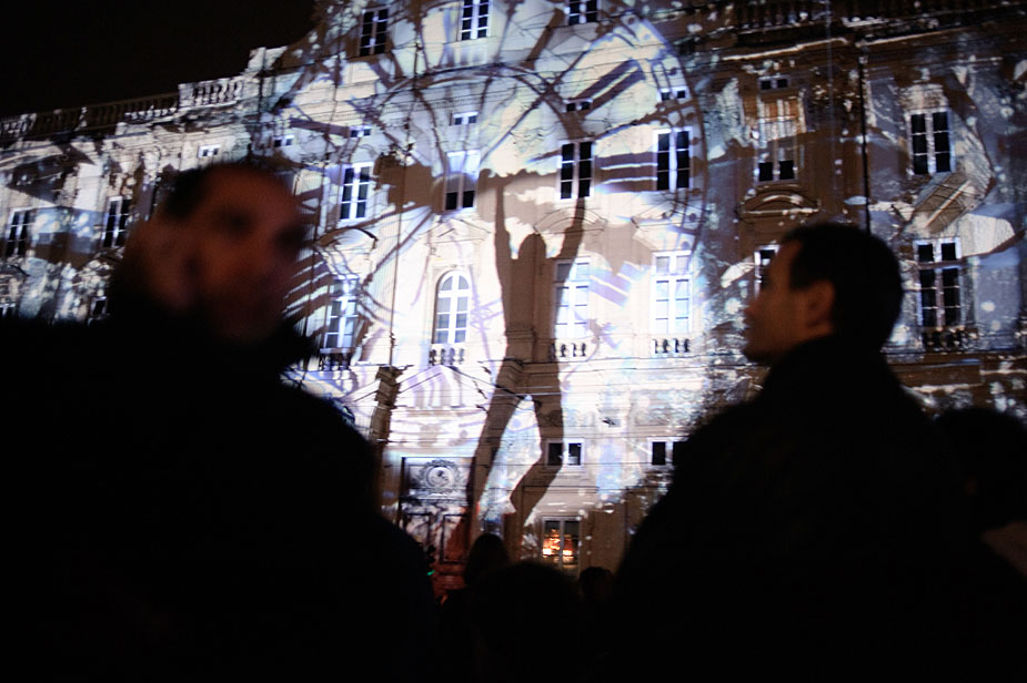 12月5日,在法國(guó)里昂,人們欣賞燈光表演。第11屆燈節(jié)到來之際,里昂城被五彩變幻的燈光裝飾。圖片來源:中國(guó)新聞網(wǎng)