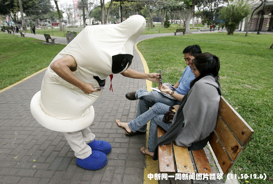 12月1日,世界艾滋病日,智利首都利馬的一對情侶從防艾宣傳者中接過避孕套。圖片來源:中國新聞網