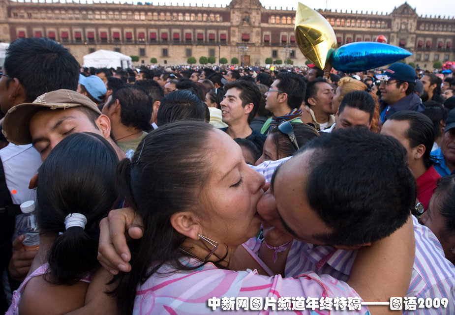 世界最多愛侶接吻:2月14日,墨西哥首都墨西哥城32000對愛侶在索卡洛廣場同時接吻打破了吉尼斯紀錄。圖片來源:中國新聞網(wǎng)