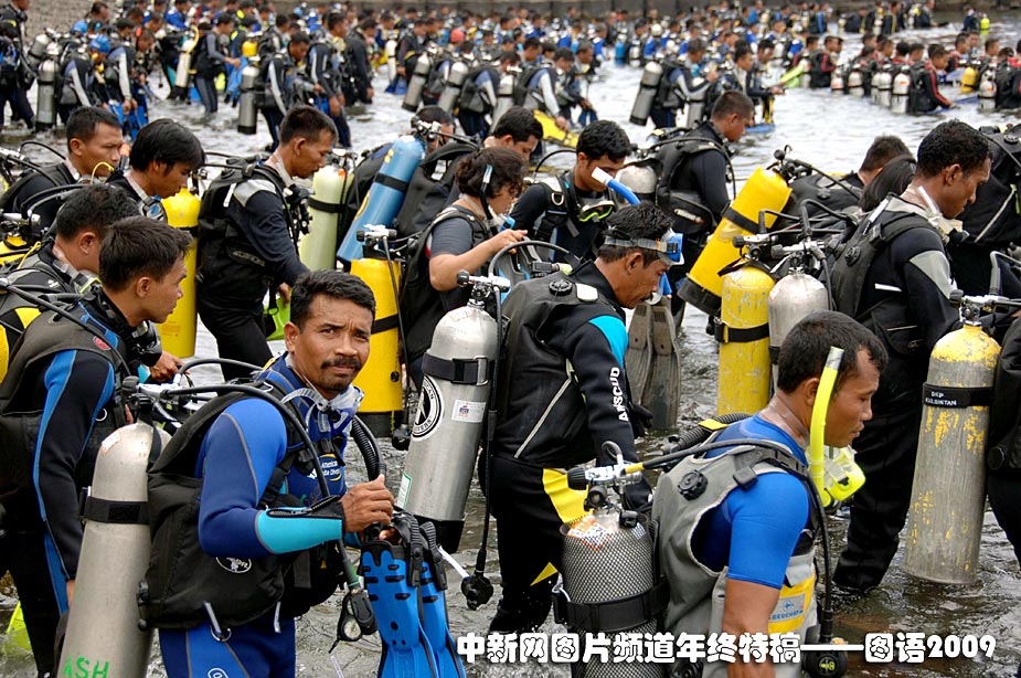 同時潛水最多人:8月16日,印尼2468名潛水員同時潛入水下,這一壯舉創(chuàng)造了一個新的吉尼斯世界紀錄。圖片來源:中國新聞網(wǎng)
