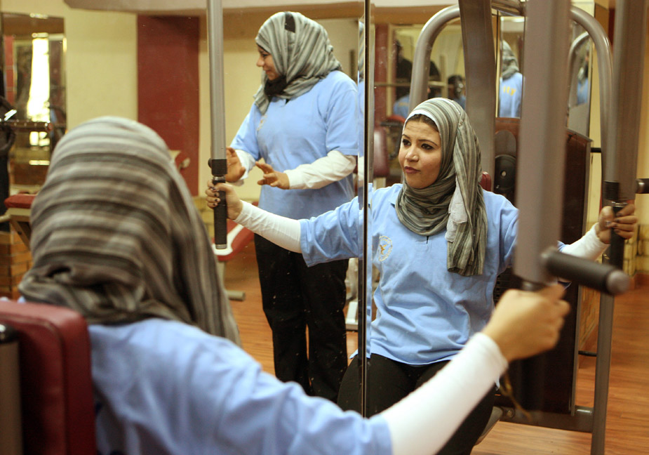 近日,埃及“女子警衛(wèi)”在開(kāi)羅郊區(qū)一個(gè)體育館進(jìn)行訓(xùn)練。她們專為有一定社會(huì)地位和名氣的女性提供服務(wù)。圖片來(lái)源:中國(guó)新聞網(wǎng)