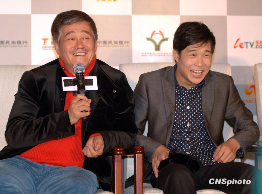 12月9日下午,張藝謀喜劇新作《三槍拍案驚奇》在京舉行首映發(fā)布會(huì),導(dǎo)演張藝謀、大病初愈的趙本山攜孫紅雷、小沈陽、閆妮、倪大洪、程野、毛毛全明星主創(chuàng)團(tuán)隊(duì)齊齊亮相。現(xiàn)場(chǎng)張藝謀、趙本山、小沈陽搞笑不斷,引得爆笑連連,上演了一出戲外喜劇。趙本山首度回應(yīng)了花兩億購買私人飛機(jī)一事,稱還沒有定下來。張藝謀表示會(huì)和“趙家班”繼續(xù)深度合作,并且豪言預(yù)計(jì)未來的中國(guó)電影單部影片票房可能達(dá)到2億美元。圖為張藝謀、趙本山、小沈陽成為“笑彈”。中新社發(fā) 李學(xué)仕 攝