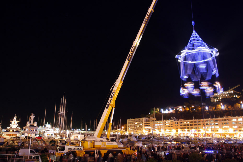 12月9日,墨西哥音樂舞蹈藝術家們進行了一場“空中快車”表演,摩納哥的藝術家們吊在起重機上演奏樂器并表演空中舞蹈。圖片來源:中國新聞網