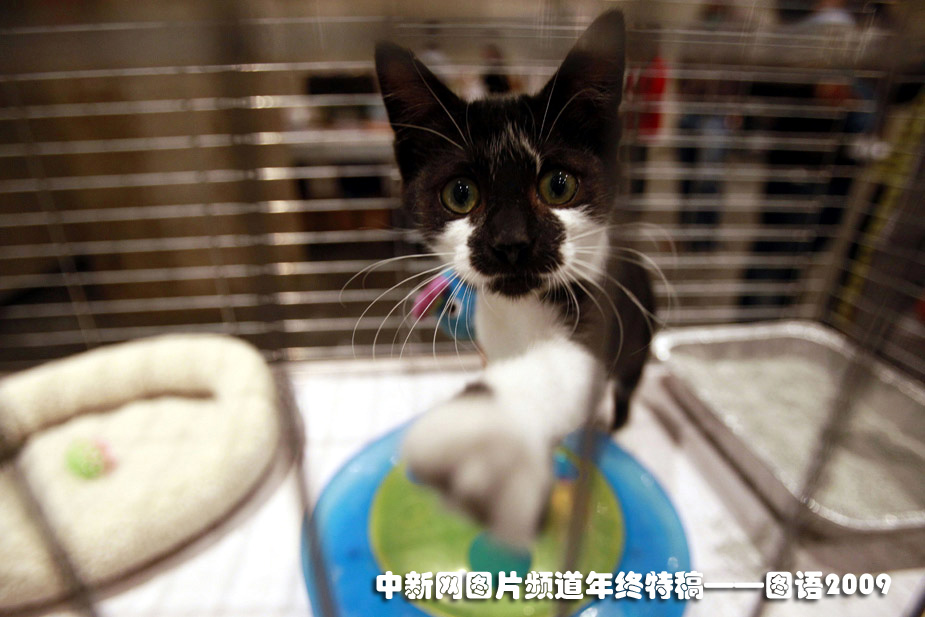 10月17日,世界最大的寵物貓狗展示會(huì)在美國紐約舉行。一只小貓“舉手乞食”。