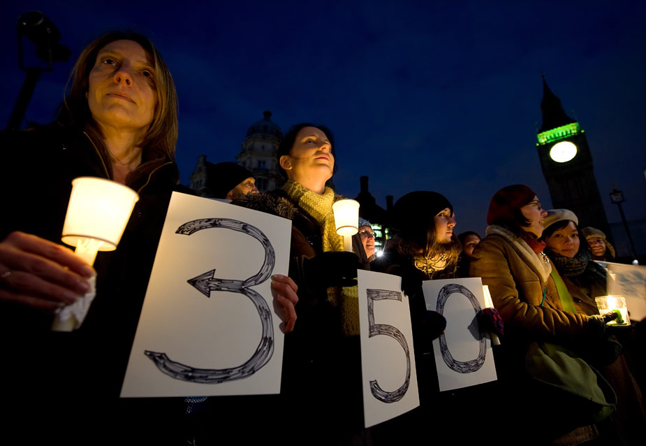 2009年12月12日,世界各地的環(huán)保人士舉行各種活動(dòng)助威氣候大會(huì),呼吁環(huán)保。圖片來源:中國新聞網(wǎng)