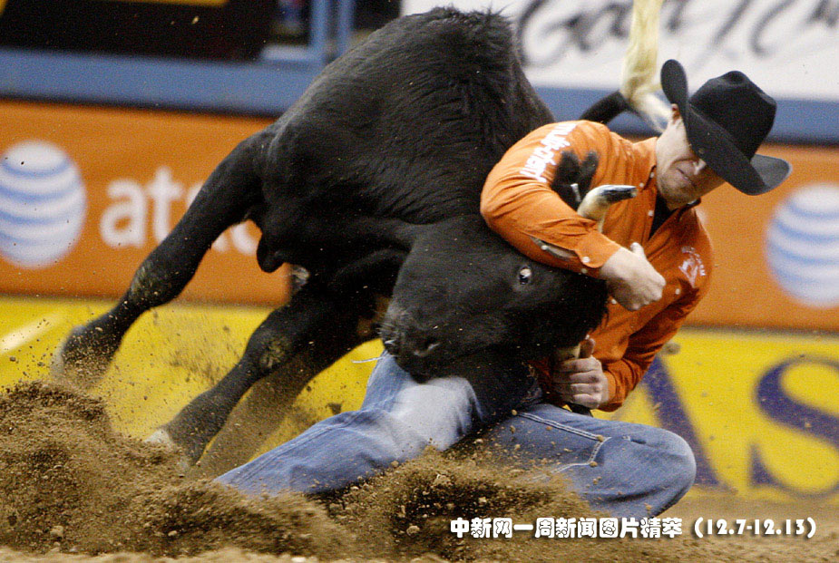 11日(周五),美國拉斯維加斯,一位全美斗牛競技好手正在與公!八印薄D片來源:中國新聞網(wǎng)