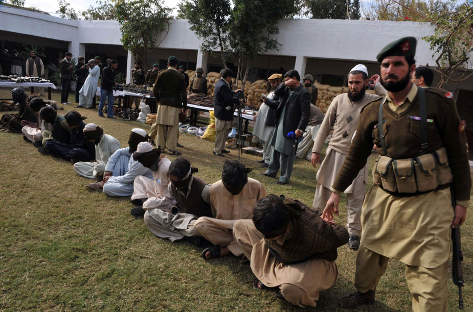 12月12日,在巴基斯坦西北部開伯爾部落地區,巴基斯坦軍方抓獲多名塔利班武裝分子,繳獲大量軍火。