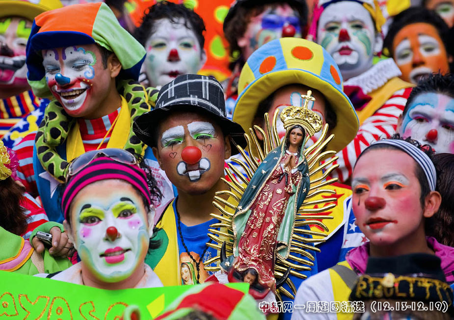 12月16日,墨西哥小丑們聚集在首都墨西哥城參加街頭游行活動(dòng),700多名小丑用自己五彩斑斕的服飾和滑稽可笑的表演為沿途的人們帶來(lái)歡笑。圖片來(lái)源:中國(guó)新聞網(wǎng)>>點(diǎn)擊觀看詳細(xì)內(nèi)容