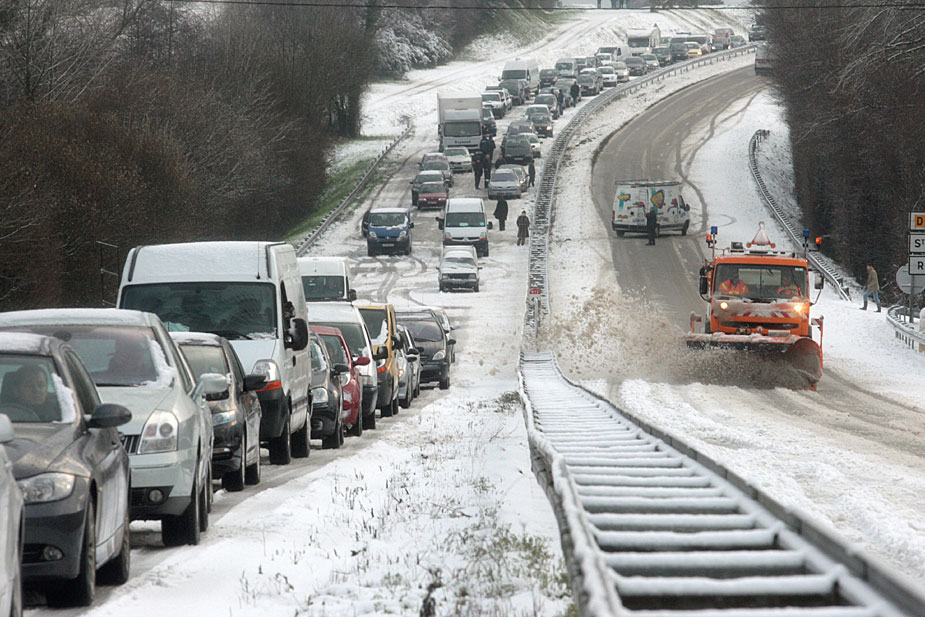 圖為12月18日,大雪導(dǎo)致法國圣約瑟夫地區(qū)出現(xiàn)嚴(yán)重堵車。