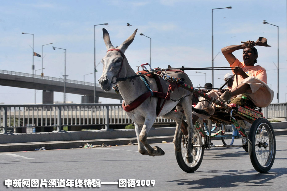 3月1日,巴基斯坦的驢車夫們在卡拉奇舉辦的驢車大賽中“駕驢狂奔”。驢車大賽是當地一個傳統節日的組成部分。