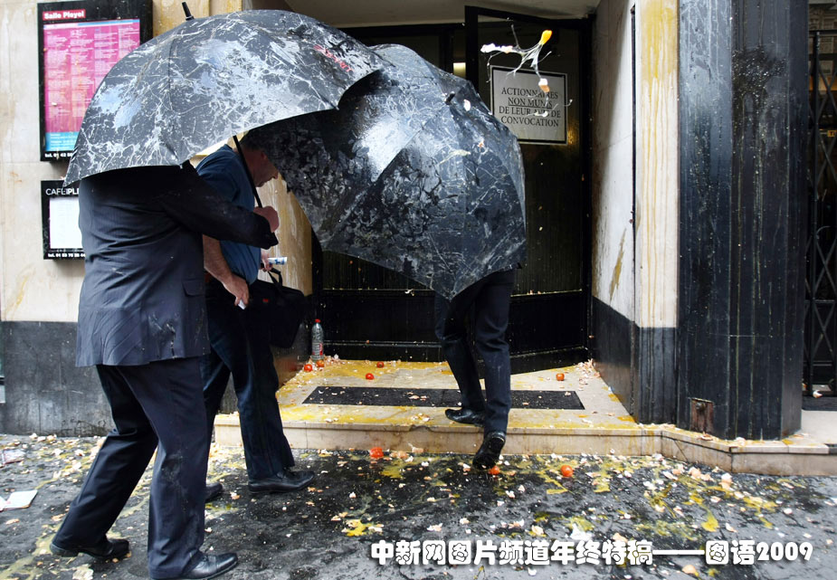 2009年5月7日,法國一家上市公司的員工聚集在公司門前向公司股東投擲雞蛋,起因是近日股東通過的財務決議并沒有滿足員工的要求。