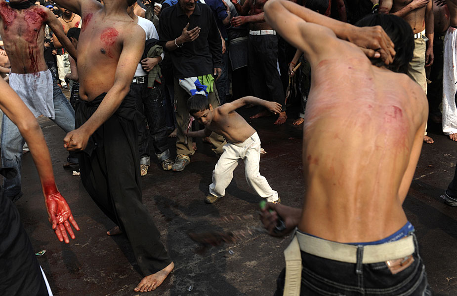 12月28日,印度穆斯林慶祝阿舒拉節。一些當地穆斯林在儀式上用鐵鞭抽打自己,以此慶祝節日。圖片來源:中國新聞網