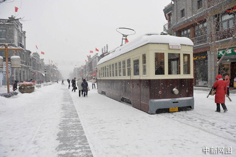 大雪中的北京前門商業區。中新網記者 金碩 攝