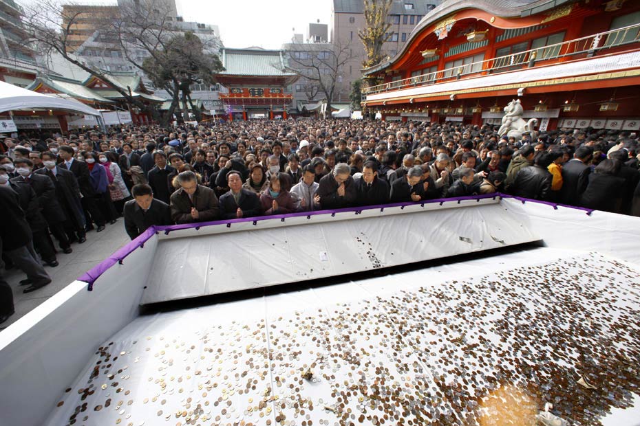 2010年1月4日,日本東京,商人聚集在神田神社里祈福,希望在新的一年里生意興隆。當(dāng)天是日本股市2010年首個(gè)交易日,市場(chǎng)升勢(shì)延續(xù)。圖片來源:中國新聞網(wǎng)