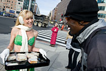 女郎寒風中宣傳素食