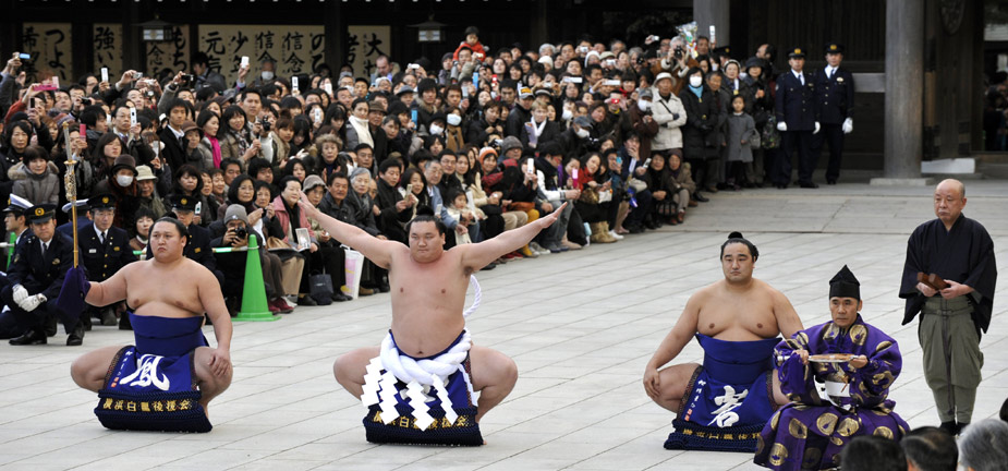1月6日,日本舉行了傳統的相撲表演迎新年活動。