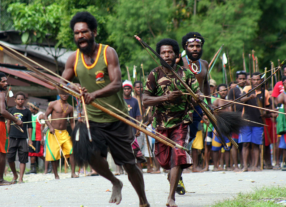 1月6日,印尼巴布省的兩個村落因債務(wù)問題引發(fā)了武裝爭斗,雙方手持弓箭等原始武器進行了一場原始的戰(zhàn)爭。目前,這場沖突已經(jīng)造成多人傷亡。圖片來源:中國新聞網(wǎng)