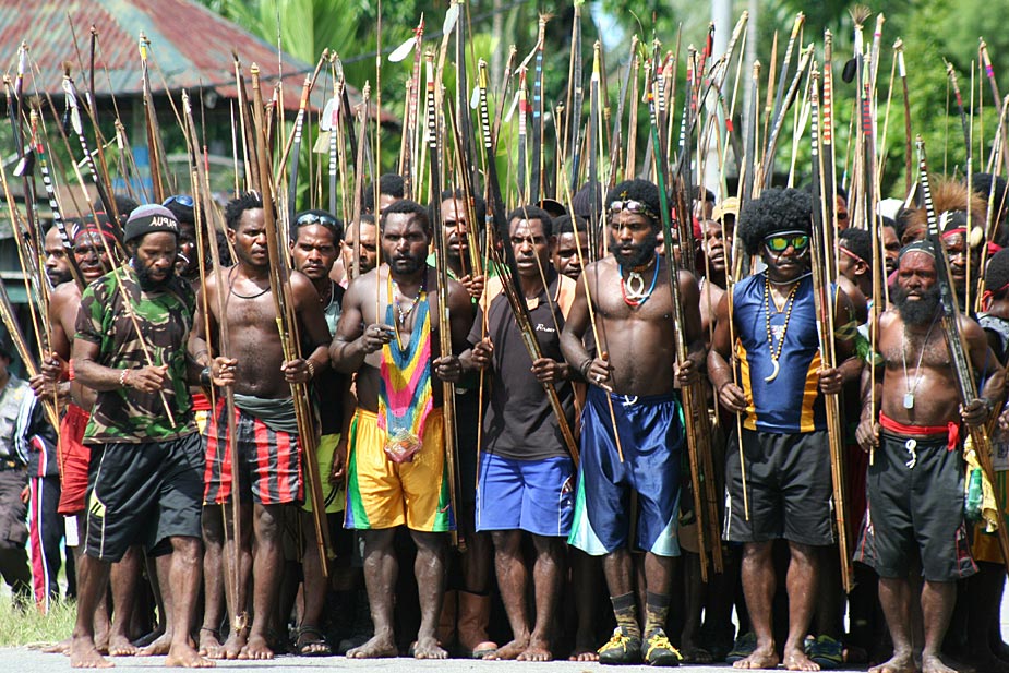 1月6日,印尼巴布省的兩個村落因債務問題引發了武裝爭斗,雙方手持弓箭等原始武器進行了一場原始的戰爭。目前,這場沖突已經造成多人傷亡。圖片來源:中國新聞網