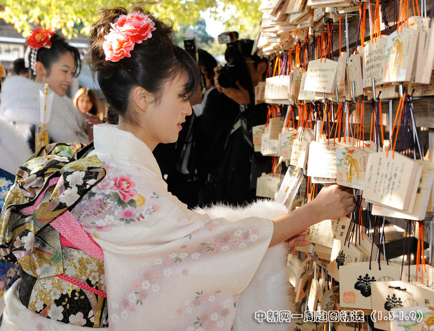 今年的1月11日,是日本傳統的成人節,所有滿20歲的年輕人將宣告自己邁進了成人行列。1月8日,日本一家公司年滿20歲的年輕女孩紛紛穿上和服,到廟宇中祈福,提前慶祝成人節的到來。圖片來源:中國新聞網>>點擊觀看詳細內容