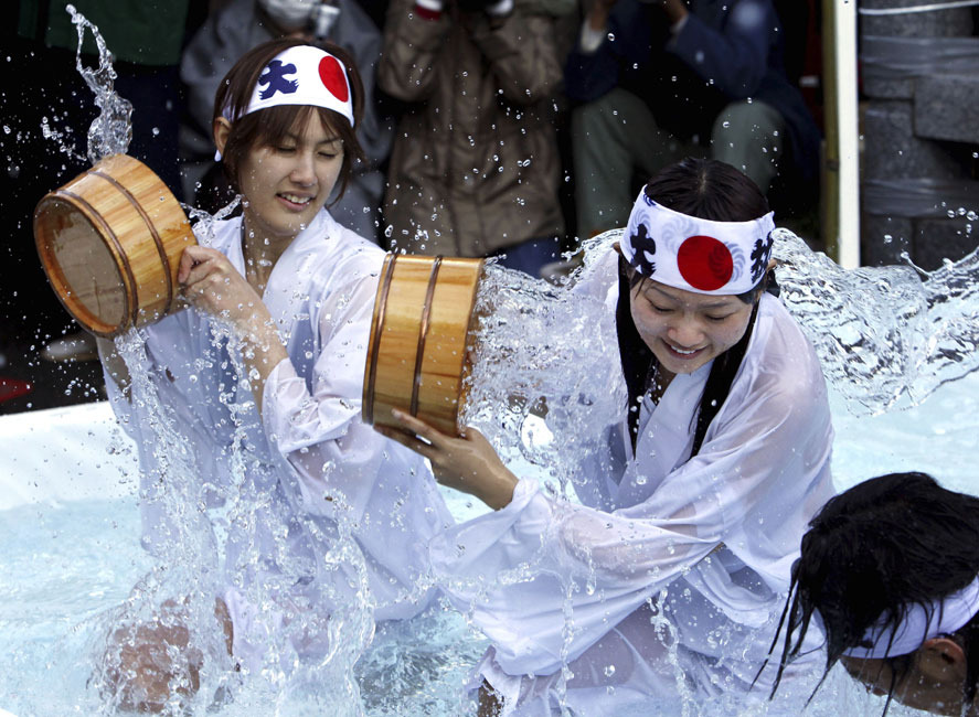1月9日,日本東京,眾多日本民眾參加傳統的凈化儀式,他們用冷水澆身,祈禱身體和靈魂得到凈化。
