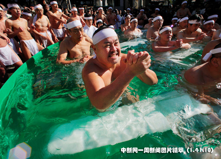 1月10日(周日),日本東京,一群健身愛好者在冷水中浸泡,“比拼”毅力。圖片來源:中國新聞網