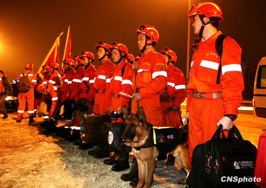 1月13日晚,中國國際救援隊從首都國際機場搭乘飛赴海地執(zhí)行救援任務。據(jù)悉,救援隊一行共計68人,由三個分隊組成,包括來自國家地震局的10人專家分隊等。據(jù)了解,救援隊隨機攜帶了總價值約1200萬元人民幣的10余噸救災物資,其中包括救援、通訊、后勤保障、醫(yī)療、食品在內等物資設備和三只搜救犬。中新社發(fā) 雷虹 攝