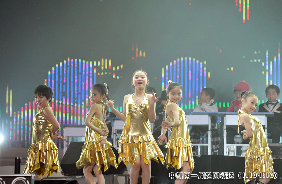 1月11日晚,第二屆音樂風云榜新人盛典在京舉行,盛典現場的音樂課上,兒童版的Wonder Girl、Super Junior、邁克爾·杰克遜、曾軼可、大張偉紛紛登臺獻藝,讓現場觀眾們笑聲不斷。圖片來源:中國新聞網>>點擊觀看詳細內容