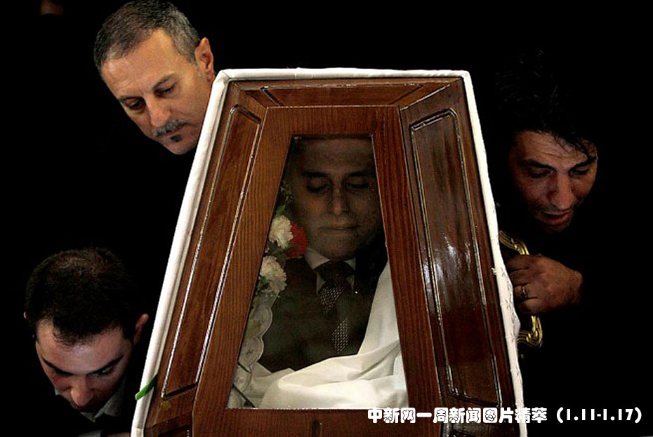 1月13日(周三),在塞浦路斯首都尼科西亞,送葬者抬著迪亞斯傳媒集團(Dias Media Group)首席執行長哈迪克斯希斯(Andis Hadjicostis)的靈柩。哈迪克斯希斯周一在家外遭槍擊身亡,警方還沒有公布可能的犯罪動機。圖片來源:中國新聞網