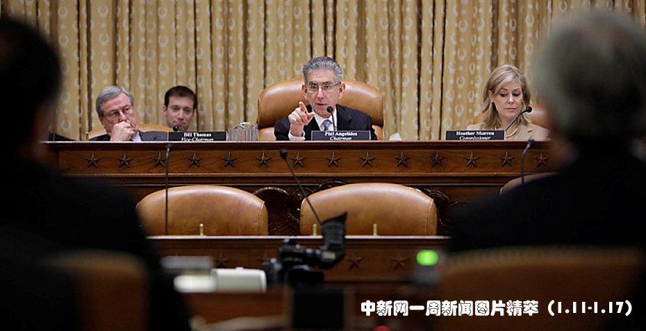 1月13日(周三),金融危機調查委員會(Financial Crisis Inquiry Commission)主席安吉利得斯(Phil Angelides,中)在國會山(Capitol Hill)一個聽證會上提問。在談及某個問題時,他將高盛集團(Goldman Sachs)一位高管比作二手車推銷員。圖片來源:中國新聞網