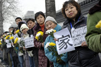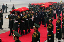 1月19日,北京民眾自發守候在通往北京八寶山殯儀館的路口迎接英烈的靈柩。當日,八位海地地震遇難中國維和警察的靈柩搭乘專機將抵達北京。中新網記者 金碩 攝